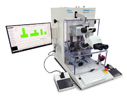 The 4600 Bondtester is a benchtop system designed to automatically perform complex test procedures without needing operator input. The system can automatically complete shear and pull test patterns with different orientations of bonds, while recording failure mode images upon completion.